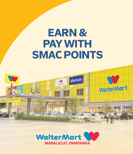Earn and pay with SMAC Points when you shop at WalterMart Mabalacat. Plus, get 50% OFF, B1T1, and more.